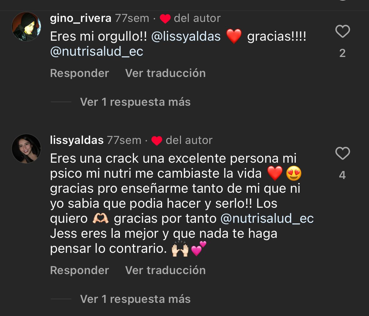 Te enseño un par deTestimonios de mis pacientes...